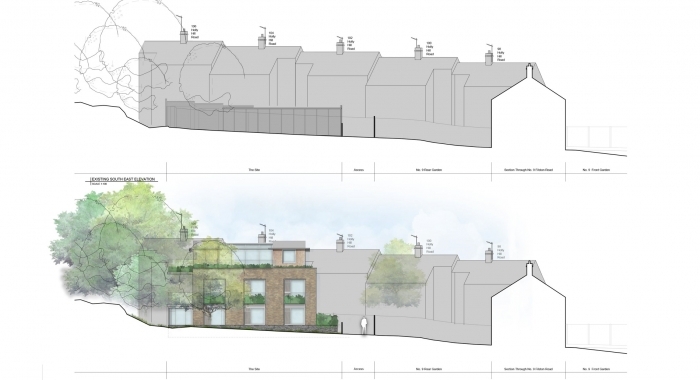 Filston Road is a residential project on a back-land garage site in South London. The design-led scheme addresses numerous challenges on a constrained site, including six single-storey garages, rights of access issues, root ball protection zones for off-site trees, separation requirements to existing properties, and privacy concerns for neighboring gardens.